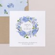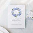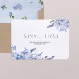 Das beliebte Blumendesign wird mit einem modernen Twist auf der Hochzeitseinladung Hortense neu interpretiert. Ein wunderschöner Kranz aus blauen Blumen schmückt diese Kreation, die perfekt ist, um den Ton für eine stilvolle und farbenfrohe Landhochzeit zu setzen.