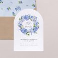Diese elegante Einladungskarte mit bogenförmiger Oberkante kann auf der Vorder- und Rückseite mit Informationen zu Ihrem großen Tag personalisiert werden.
