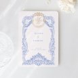 Ein Meisterwerk aus Illustrationen und prächtigen Verzierungen im Stil der Regency-Ära: Die Hochzeitseinladung „Vienna“ kündigt das bevorstehende Ereignis mit Stil und Eleganz an. Blumen, Ranken, ein goldenes Emblem und kunstvoll kalligrafierte Initialen verleihen dieser Papeterie einen Stil, der unverkennbar an die Ästhetik von Bridgerton erinnert.