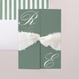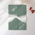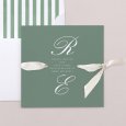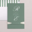 Minimalistisch und chic zugleich, zeigt die Hochzeitskarte Canterbury die Initialen des Brautpaars in schöner Kalligrafie. Eine Kreation in sanften Grüntönen, ideal, um eine elegante Hochzeit zu feiern.