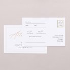Nach Erhalt der Hochzeitseinladung müssen Ihre Gäste die Antwortkarte nur ausfüllen und können sie ganz einfach als Postkarte an Sie zurücksenden. Die Empfängeradresse ist bereits vorgedruckt und einen Platz für die Briefmarke gibt es auch!