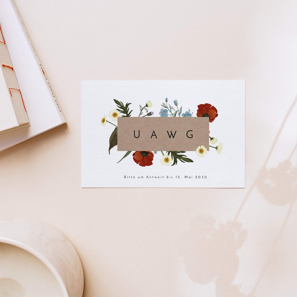 Nach Erhalt der Hochzeitseinladung müssen Ihre Gäste die Antwortkarte nur ausfüllen und können sie ganz einfach als Postkarte an Sie zurücksenden. Die Empfängeradresse ist bereits vorgedruckt und einen Platz für die Briefmarke gibt es auch!