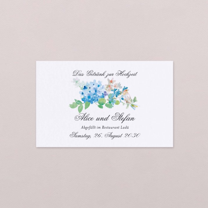 Dekorieren Sie Ihre Getränkeflaschen liebevoll mit Flaschenetiketten im passenden Design zu Ihrer Hochzeitsdeko!