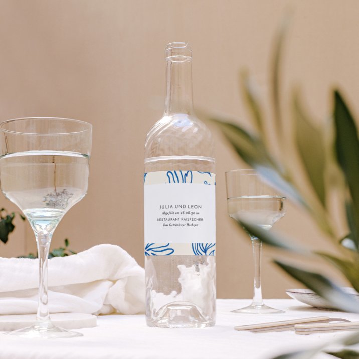 Die Flaschenetiketten können auf sämtliche Flaschen (Wein, Sekt, Wasser oder Spirituosen) geklebt werden und verleihen Ihrer Tischdeko einen exklusiven Touch. Sie werten Ihre Getränkeflaschen auf und eignen sich auch hervorragend für Souvenir-Flaschen, die Ihre Gäste nach der Hochzeit mit nach Hause nehmen können.