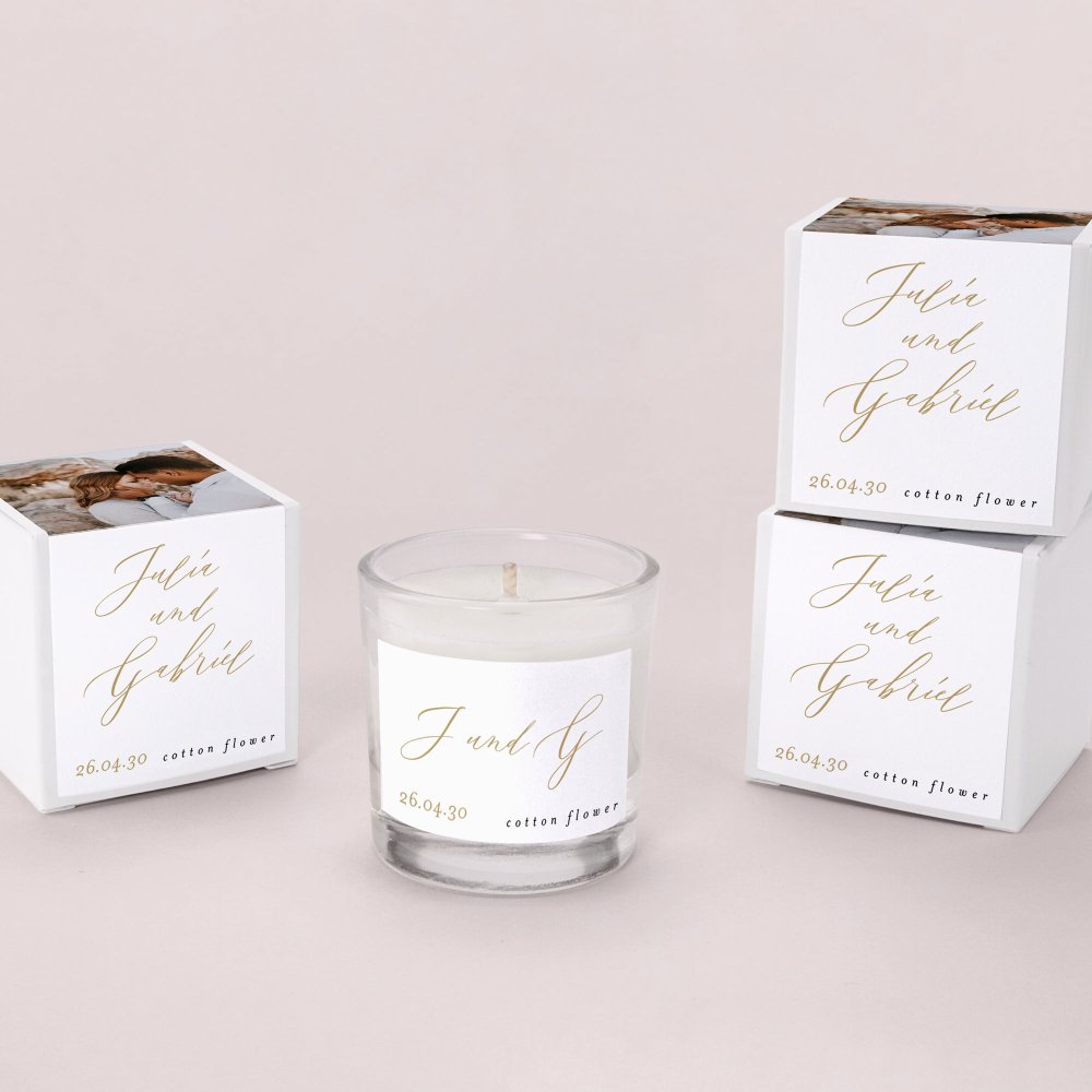 Schenken Sie Ihren Gästen eine schöne Duftkerze als Dankeschön für ihre Anwesenheit zu Ihrer Hochzeit.