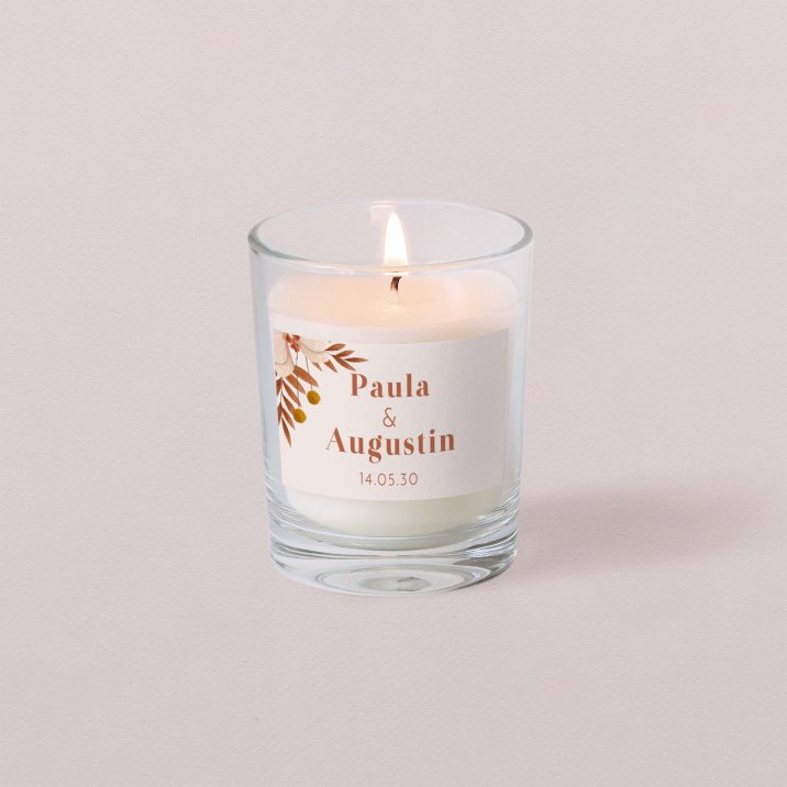 Mit ihrem zarten Duft ist diese kleine personalisierte Kerze ein perfektes Gastgeschenk und eine schönes Andenken an gemeinsam verbrachten Momente.