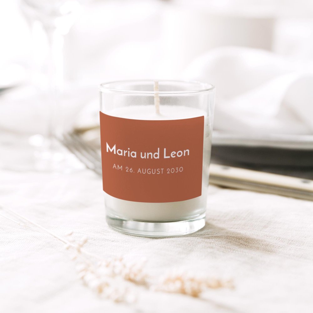 Mit ihrem zarten Duft ist diese kleine personalisierte Kerze ein perfektes Gastgeschenk und eine schönes Andenken an gemeinsam verbrachten Momente.