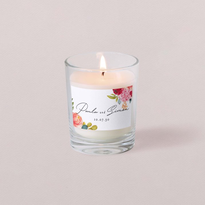 Mit ihrem zarten Duft ist diese kleine personalisierte Kerze ein perfektes Gastgeschenk und eine schönes Andenken an gemeinsam verbrachten Momente.