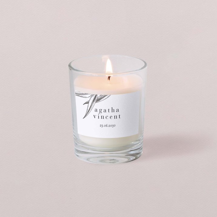 Mit ihrem zarten Duft ist diese kleine personalisierte Kerze ein perfektes Gastgeschenk und eine schönes Andenken an gemeinsam verbrachten Momente.
