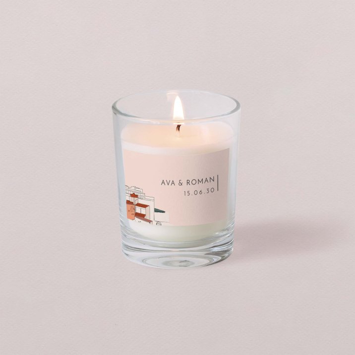 Mit ihrem zarten Duft ist diese kleine personalisierte Kerze ein perfektes Gastgeschenk und eine schönes Andenken an gemeinsam verbrachten Momente.