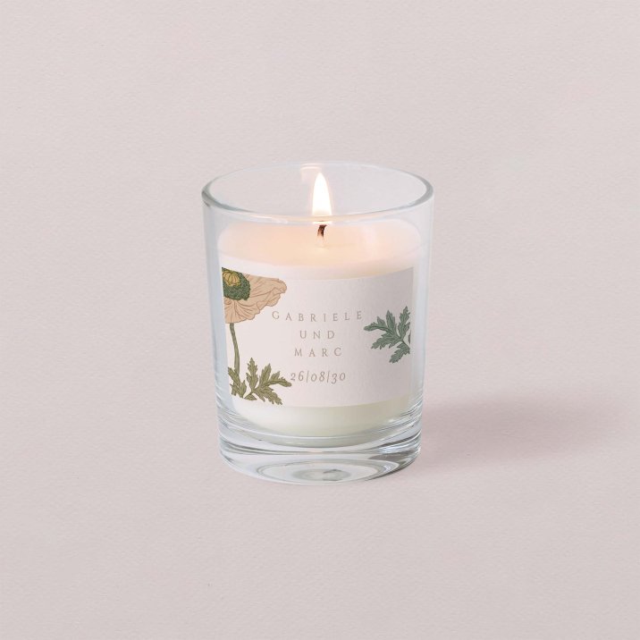 Mit ihrem zarten Duft ist diese kleine personalisierte Kerze ein perfektes Gastgeschenk und eine schönes Andenken an gemeinsam verbrachten Momente.
