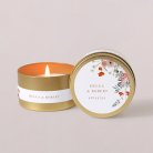 Unsere goldenen Kerzen sind das perfekte Gastgeschenk für Ihre Hochzeit! Der zarte Feigenduft wird Ihre Gäste in sanfte Erinnerung an diesen besonderen Tag zurückversetzen. Die Kerze ist in eine elegante goldene Metalldose gegossen und kann mit Ihren Vornamen, dem Datum Ihrer Hochzeit und einer kurzen Notiz Ihrer Wahl personalisiert werden. Unsere goldenen Kerzen werden in Frankreich hergestellt. Sie werden in einem hübschen Baumwollsäckchen geliefert und enthalten zwei Klebeetiketten pro Kerze, die Sie selbst gestalten und aufkleben können.