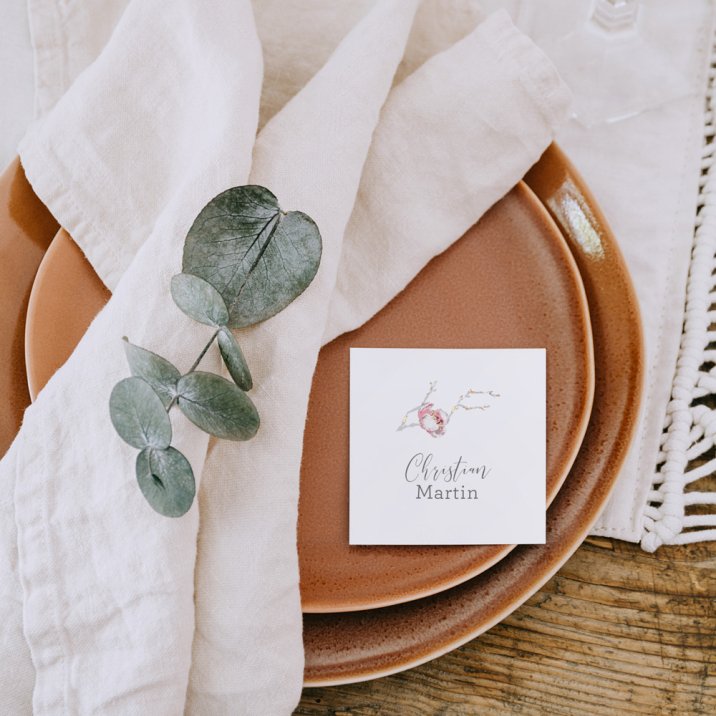 Tipp: Legen Sie die Tischkarten auf die Teller oder die gefalteten Servietten am Sitzplatz Ihrer Hochzeitsgäste.