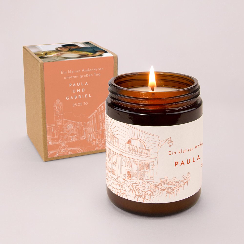 Mit ihrem zarten Duft und ihrem eleganten Vintage-Look ist diese kleine personalisierte Kerze ein perfektes Gastgeschenk und eine schönes Andenken an gemeinsam verbrachten Momente.