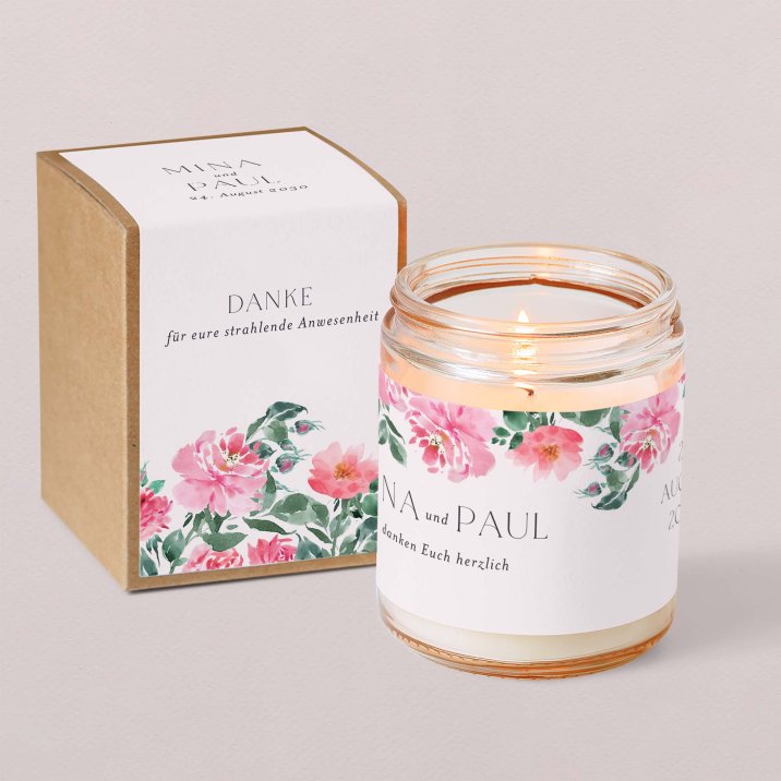 Mit ihrem zarten Duft und ihrem eleganten Vintage-Look ist diese kleine personalisierte Kerze ein perfektes Gastgeschenk und eine schönes Andenken an gemeinsam verbrachten Momente.