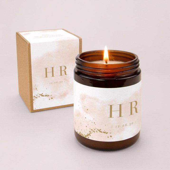 Mit ihrem zarten Duft und ihrem eleganten Vintage-Look ist diese kleine personalisierte Kerze ein perfektes Gastgeschenk und eine schönes Andenken an gemeinsam verbrachten Momente.