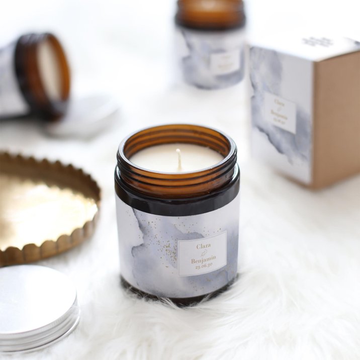 Mit ihrem zarten Duft und ihrem eleganten Vintage-Look ist diese kleine personalisierte Kerze ein perfektes Gastgeschenk und eine schönes Andenken an gemeinsam verbrachten Momente.