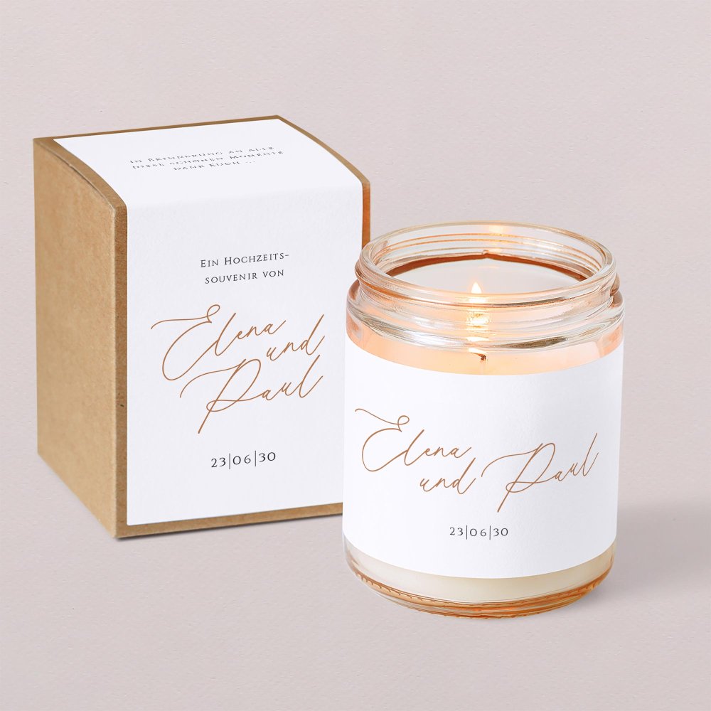 Mit ihrem zarten Duft und ihrem eleganten Vintage-Look ist diese kleine personalisierte Kerze ein perfektes Gastgeschenk und eine schönes Andenken an gemeinsam verbrachten Momente.