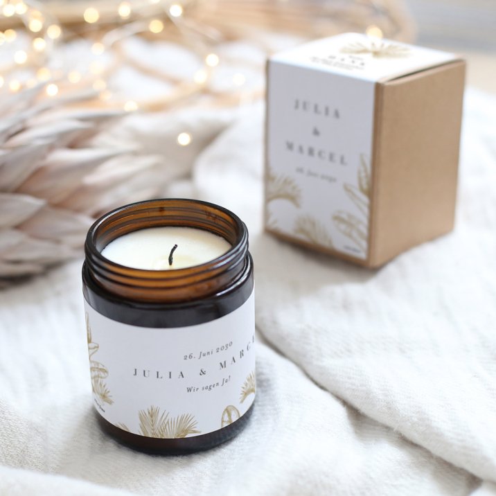 Mit ihrem zarten Duft und ihrem eleganten Vintage-Look ist diese kleine personalisierte Kerze ein perfektes Gastgeschenk und eine schönes Andenken an gemeinsam verbrachten Momente.