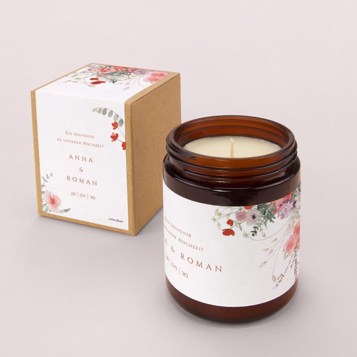 Mit ihrem zarten Duft und ihrem eleganten Vintage-Look ist diese kleine personalisierte Kerze ein perfektes Gastgeschenk und eine schönes Andenken an gemeinsam verbrachten Momente.