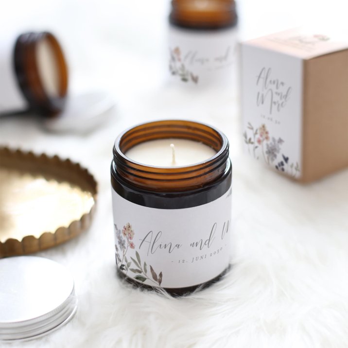 Mit ihrem zarten Duft und ihrem eleganten Vintage-Look ist diese kleine personalisierte Kerze ein perfektes Gastgeschenk und eine schönes Andenken an gemeinsam verbrachten Momente.