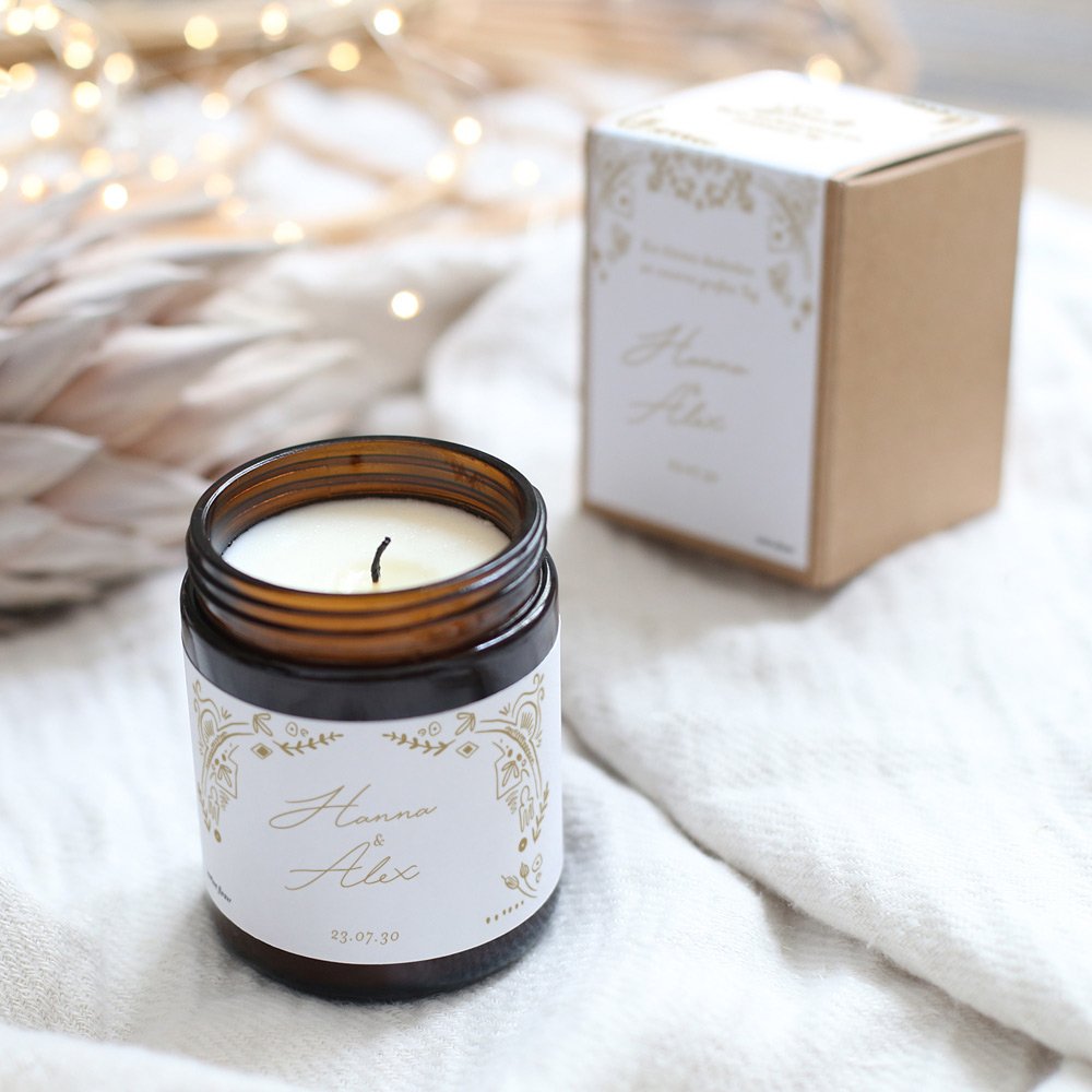 Mit ihrem zarten Duft und ihrem eleganten Vintage-Look ist diese kleine personalisierte Kerze ein perfektes Gastgeschenk und eine schönes Andenken an gemeinsam verbrachten Momente.
