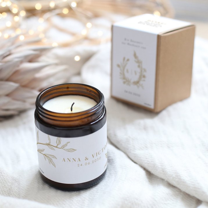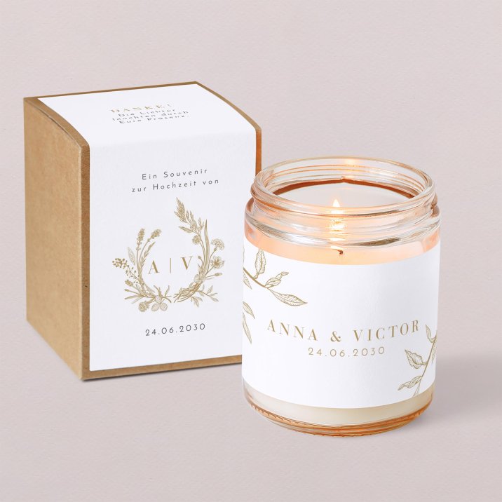Mit ihrem zarten Duft und ihrem eleganten Vintage-Look ist diese kleine personalisierte Kerze ein perfektes Gastgeschenk und eine schönes Andenken an gemeinsam verbrachten Momente.