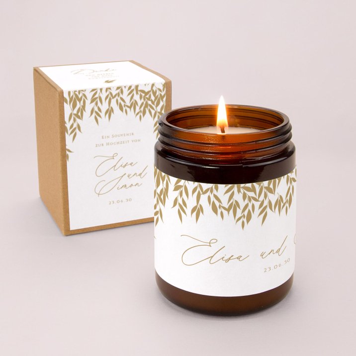 Mit ihrem zarten Duft und ihrem eleganten Vintage-Look ist diese kleine personalisierte Kerze ein perfektes Gastgeschenk und eine schönes Andenken an gemeinsam verbrachten Momente.