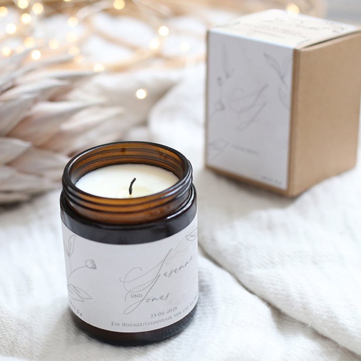 Mit ihrem zarten Duft und ihrem eleganten Vintage-Look ist diese kleine personalisierte Kerze ein perfektes Gastgeschenk und eine schönes Andenken an gemeinsam verbrachten Momente.