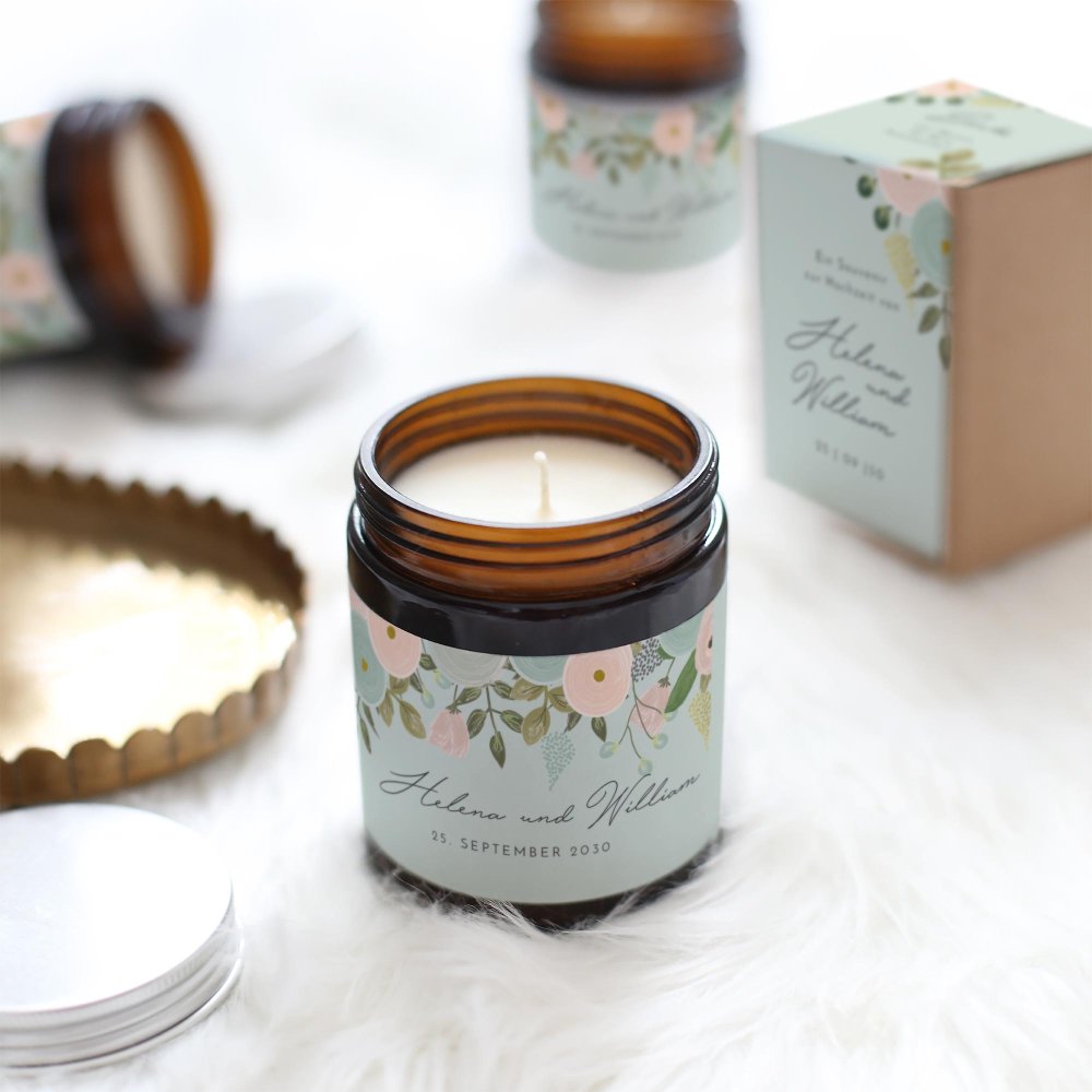 Mit ihrem zarten Duft und ihrem eleganten Vintage-Look ist diese kleine personalisierte Kerze ein perfektes Gastgeschenk und eine schönes Andenken an gemeinsam verbrachten Momente.