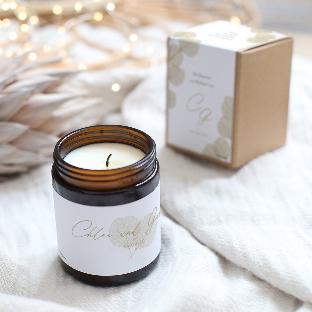 Mit ihrem zarten Duft und ihrem eleganten Vintage-Look ist diese kleine personalisierte Kerze ein perfektes Gastgeschenk und eine schönes Andenken an gemeinsam verbrachten Momente.