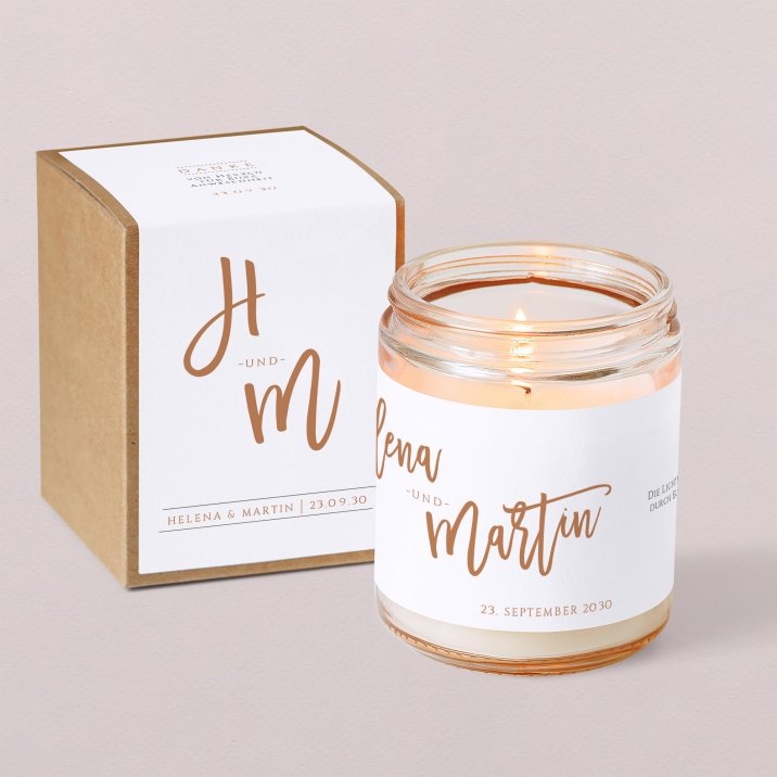 Mit ihrem zarten Duft und ihrem eleganten Vintage-Look ist diese kleine personalisierte Kerze ein perfektes Gastgeschenk und eine schönes Andenken an gemeinsam verbrachten Momente.