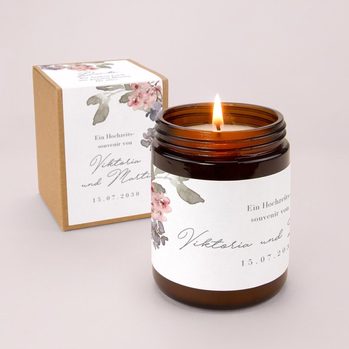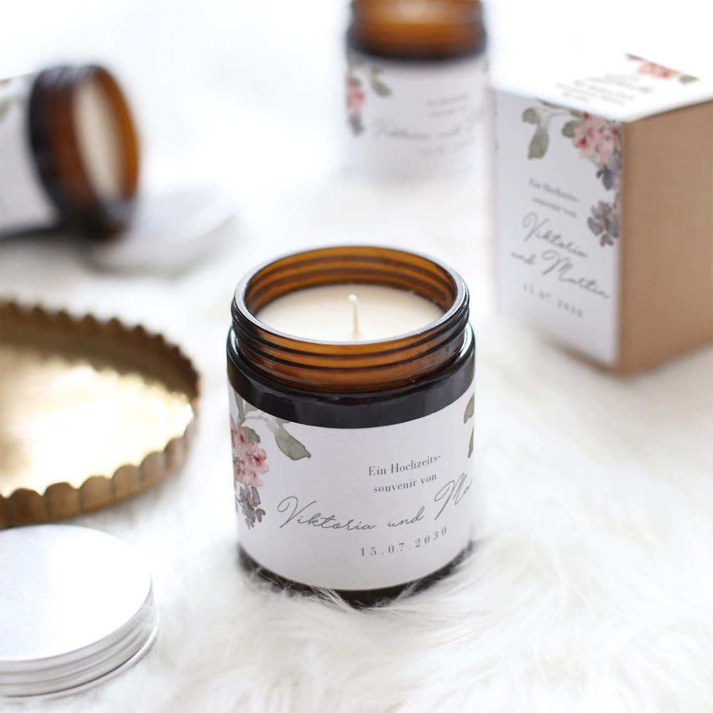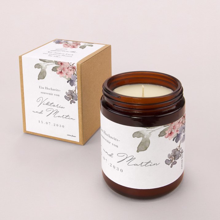 Mit ihrem zarten Duft und ihrem eleganten Vintage-Look ist diese kleine personalisierte Kerze ein perfektes Gastgeschenk und eine schönes Andenken an gemeinsam verbrachten Momente.