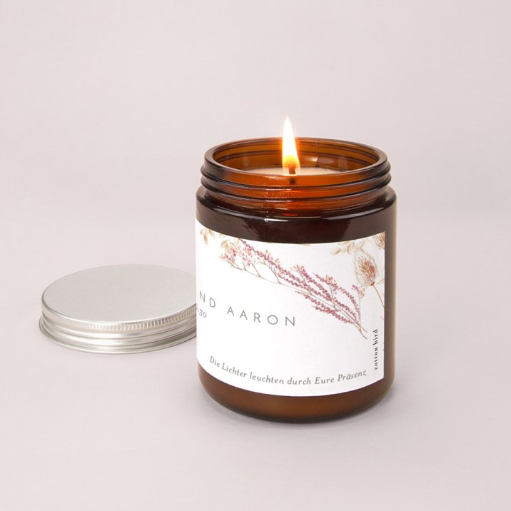 Mit ihrem zarten Duft und ihrem eleganten Vintage-Look ist diese kleine personalisierte Kerze ein perfektes Gastgeschenk und eine schönes Andenken an gemeinsam verbrachten Momente.