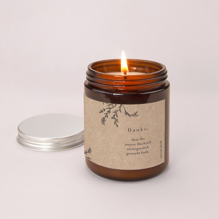 Mit ihrem zarten Duft und ihrem eleganten Vintage-Look ist diese kleine personalisierte Kerze ein perfektes Gastgeschenk und eine schönes Andenken an gemeinsam verbrachten Momente.