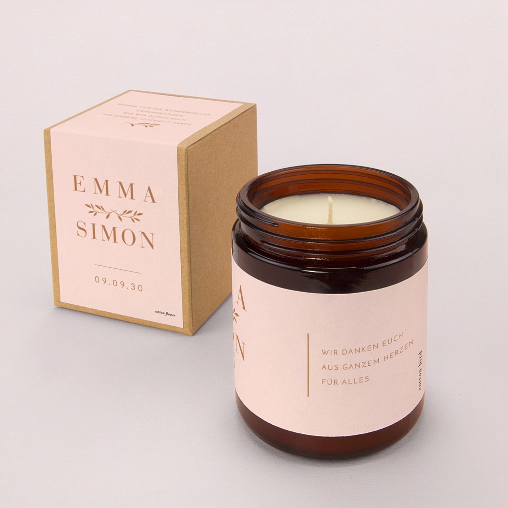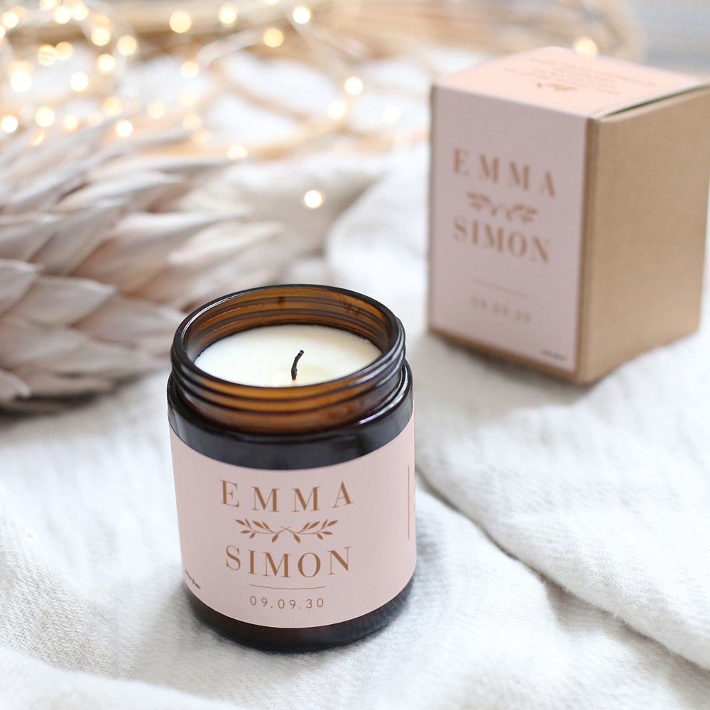Mit ihrem zarten Duft und ihrem eleganten Vintage-Look ist diese kleine personalisierte Kerze ein perfektes Gastgeschenk und eine schönes Andenken an gemeinsam verbrachten Momente.