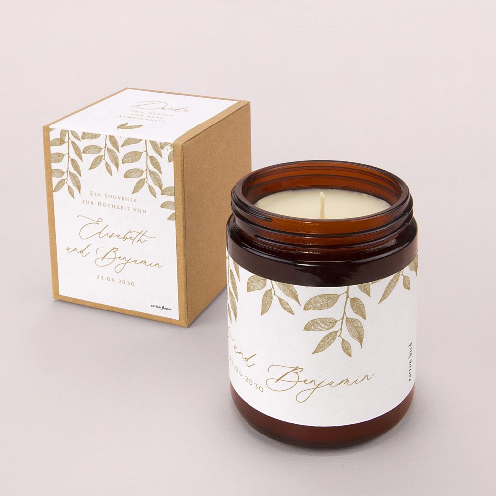 Mit ihrem zarten Duft und ihrem eleganten Vintage-Look ist diese kleine personalisierte Kerze ein perfektes Gastgeschenk und eine schönes Andenken an gemeinsam verbrachten Momente.