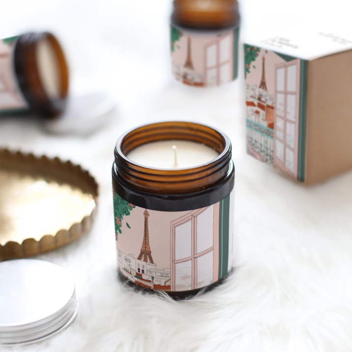 Die Kerze ist in Frankreich hergestellt und wird mit einem personalisierten Klebeetikett geliefert, das Sie selbst anbringen können. Nach dem Gebrauch kann sie mithilfe des Metalldeckels wieder verschlossen werden.