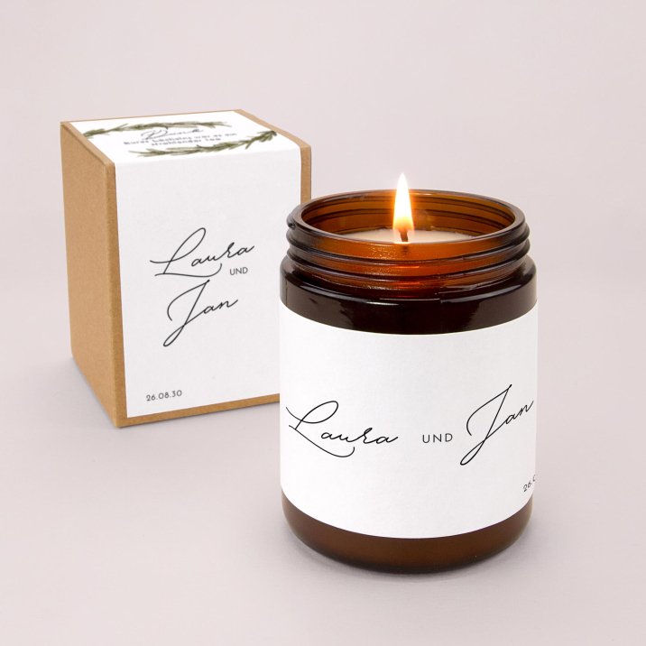 Mit ihrem zarten Duft und ihrem eleganten Vintage-Look ist diese kleine personalisierte Kerze ein perfektes Gastgeschenk und eine schönes Andenken an gemeinsam verbrachten Momente.
