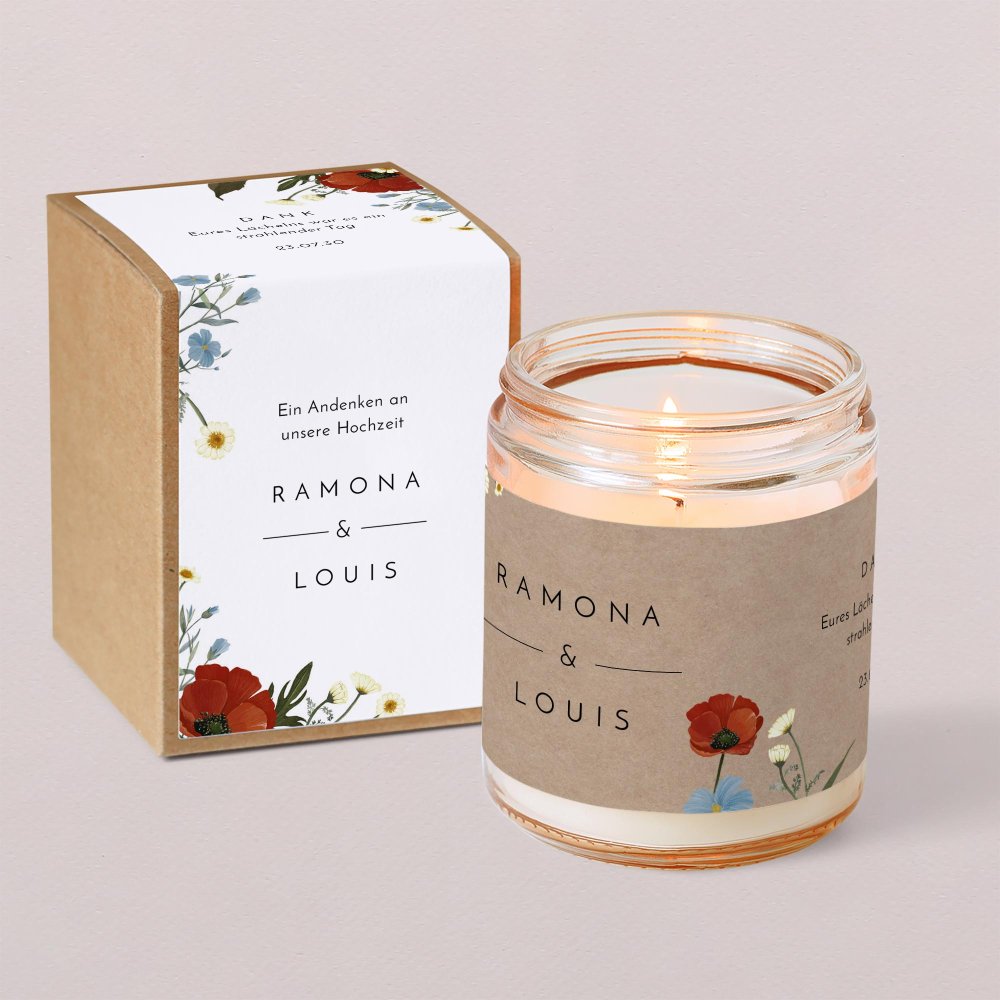 Mit ihrem zarten Duft und ihrem eleganten Vintage-Look ist diese kleine personalisierte Kerze ein perfektes Gastgeschenk und eine schönes Andenken an gemeinsam verbrachten Momente.