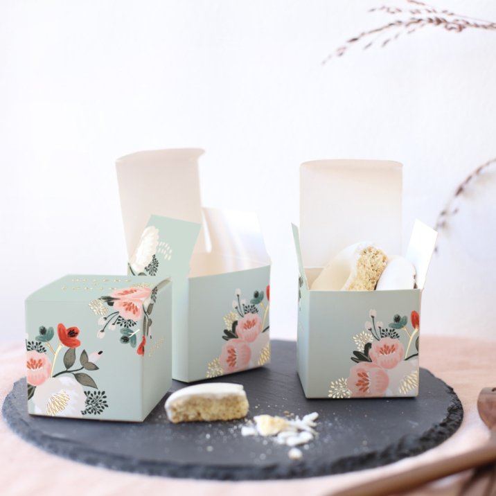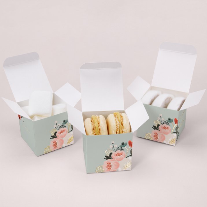 Gestalten Sie die Geschenkbox mit Ihren Namen, dem Hochzeitsdatum und ein paar Dankesworten. Gefüllt werden kann die 5,4 x 5,4 cm große Verpackung mit Süßigkeiten oder einer kleinen Aufmerksamkeit. Lassen Sie Ihrer Fantasie freien Lauf und überraschen Sie Ihre Liebsten mit Bonbons, Macarons, Pralinen oder einem kleinen Geschenk.