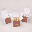 Gestalten Sie die Geschenkbox mit Ihren Namen, dem Hochzeitsdatum und ein paar Dankesworten. Gefüllt werden kann die 5,4 x 5,4 cm große Verpackung mit Süßigkeiten oder einer kleinen Aufmerksamkeit. Lassen Sie Ihrer Fantasie freien Lauf und überraschen Sie Ihre Liebsten mit Bonbons, Macarons, Pralinen oder einem kleinen Geschenk.