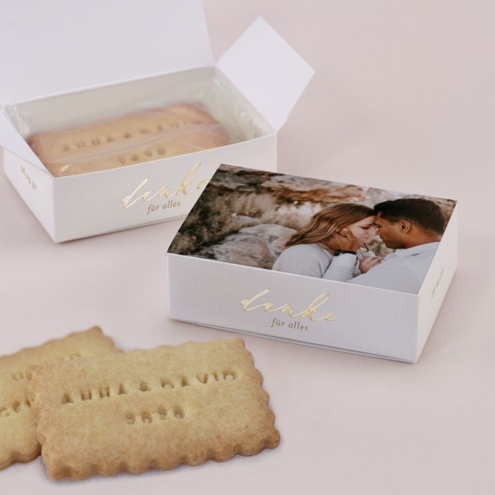 Die lecker gefüllte Keksbox ist ein schönes Dankeschön, dass Ihre Gäste sicher gerne als Andenken mit nach Hause nehmen. Denn es gibt nichts Schöneres, als ein persönliches, mit Liebe gemachtes Geschenk.