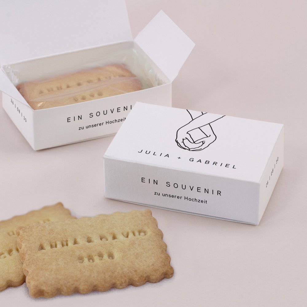 Überraschen Sie Ihre Hochzeitsgäste mit ein paar selbst gebackenen Keksen in einer schönen Keksbox! Personalisieren Sie die Schachtel mit einer kleinen Nachricht, Ihren Namen oder einem Foto und dem Datum Ihrer Hochzeit.