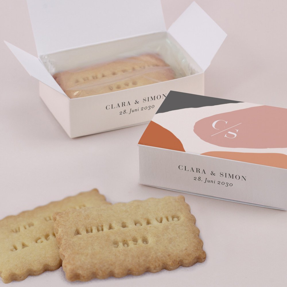 Überraschen Sie Ihre Hochzeitsgäste mit ein paar selbst gebackenen Keksen in einer schönen Keksbox! Personalisieren Sie die Schachtel mit einer kleinen Nachricht, Ihren Namen oder einem Foto und dem Datum Ihrer Hochzeit.