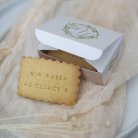 Überraschen Sie Ihre Hochzeitsgäste mit ein paar selbst gebackenen Keksen in einer schönen Keksbox! Personalisieren Sie die Schachtel mit einer kleinen Nachricht, Ihren Namen oder einem Foto und dem Datum Ihrer Hochzeit.