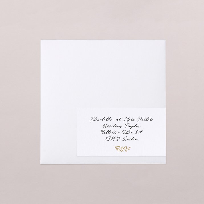 Gestalten Sie die Adressaufkleber mit Ihrer Adresse und bekleben Sie Ihre Briefumschläge, um Ihre Hochzeitspost zu dekorieren. Die Absenderadresse wird auf die rechte Seite des Aufklebers gedruckt (dieser Teil wird auf die Rückseite des Briefumschlags geklebt). Die linke Seite bleibt unbedruckt. Beschriften Sie diesen Teil per Hand mit der Empfängeradresse und verleihen Sie Ihrer Papeterie so eine ganz persönliche Note.