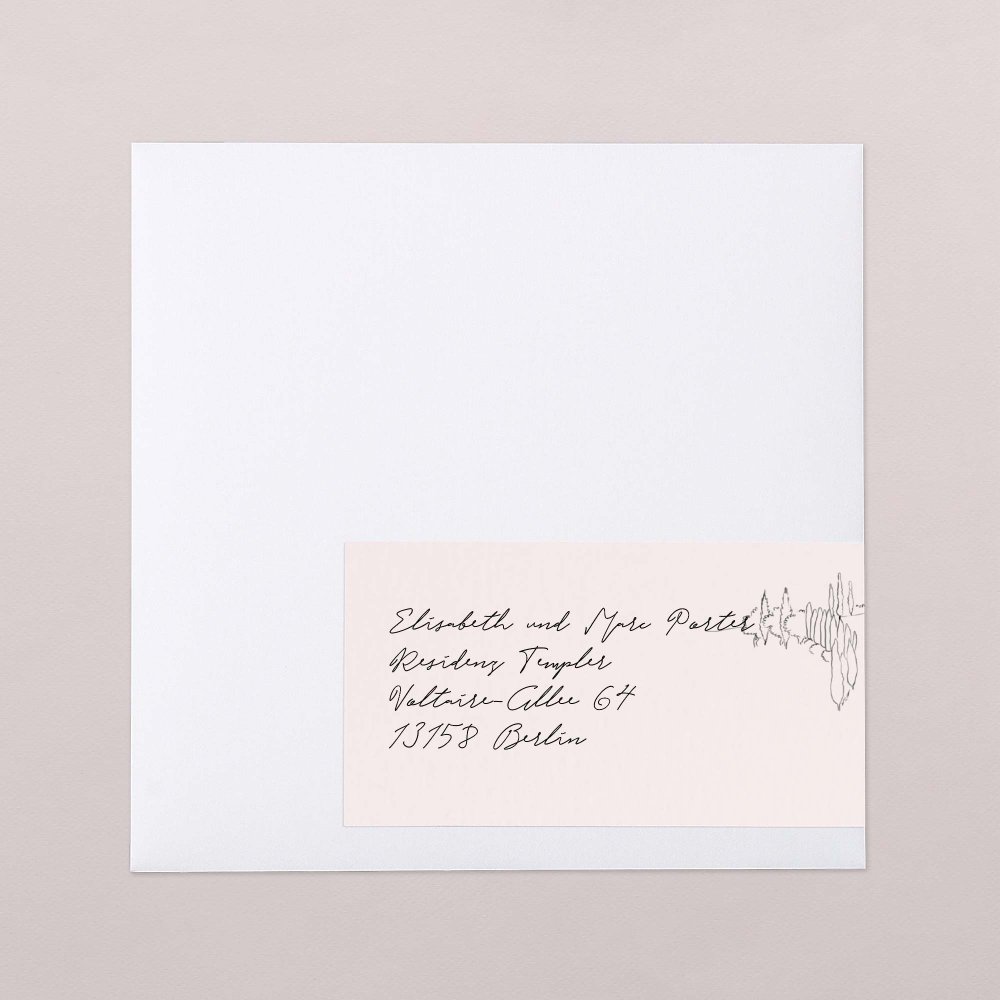 Gestalten Sie die Adressaufkleber mit Ihrer Adresse und bekleben Sie Ihre Briefumschläge, um Ihre Hochzeitspost zu dekorieren. Die Absenderadresse wird auf die rechte Seite des Aufklebers gedruckt (dieser Teil wird auf die Rückseite des Briefumschlags geklebt). Die linke Seite bleibt unbedruckt. Beschriften Sie diesen Teil per Hand mit der Empfängeradresse und verleihen Sie Ihrer Papeterie so eine ganz persönliche Note.