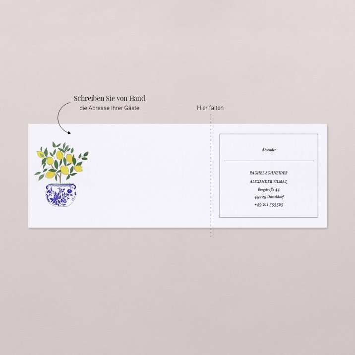 Gestalten Sie die Adressaufkleber mit Ihrer Adresse und bekleben Sie Ihre Briefumschläge, um Ihre Hochzeitspost zu dekorieren. Die Absenderadresse wird auf die rechte Seite des Aufklebers gedruckt (dieser Teil wird auf die Rückseite des Briefumschlags geklebt). Die linke Seite bleibt unbedruckt. Beschriften Sie diesen Teil per Hand mit der Empfängeradresse und verleihen Sie Ihrer Papeterie so eine ganz persönliche Note.