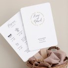 Gestalten Sie die Hochzeitsfächer mit dem Programmablauf Ihrer Feier, um Ihre Gäste auf dem Laufenden zu halten. Der Programmfächer informiert Ihre Gäste über die einzelnen Programmpunkte und sorgt für einen reibungslosen Ablauf Ihrer Hochzeitsfeier. Zudem können sich Ihre Gäste an heißen Tagen mit dem Fächer etwas frische Luft zufächeln.